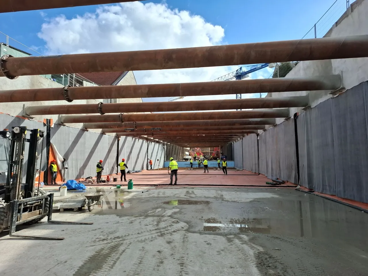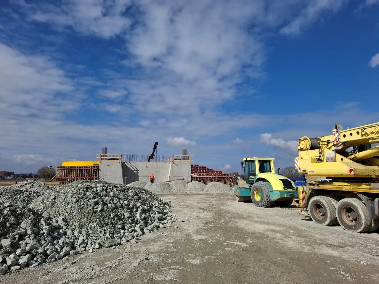 Na stavbě severní spojky v Českých Budějovicích jsou rozsáhlé práce vidět hned na několika místech. Např. se prohlubuje podjezd pod ulicí A. Trägera, pokračují úpravy železničního přejezdu na Nemanické a roste i spodní stavba mostu přes Vltavu. Výstavba nové stavby na silnici I/20 tak probíhá v podstatě na celé trase. Hotovo má být v příštím roce.